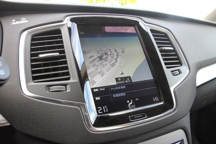 中控台部分,在新一代XC90的中控台上除了一具9吋大型觸控面板之外,其餘的實體按鍵簡化捨去到只剩下8顆,這可說是Volvo前所未有的設計。